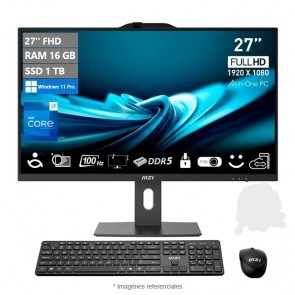 PC MSI Todo-en-Uno PRO AP272P/ Core i7-14700 Hasta 5.4 GHz, RAM 32GB, SSD 1TB, 27" Full HD a 100Hz, I.A.Integrada, Windows 11 Pro
