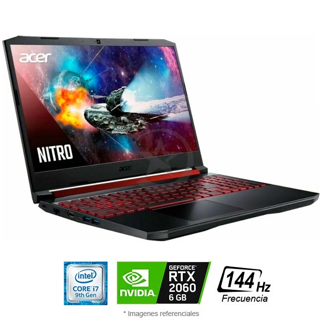 Laptop Acer Nitro 5 AN515-54 Gaming, Core i7-9750H 2.6GHz, RAM 16GB, SSD 256GB, RTX 2060 6 GB, LED 15.6'' FHD a 144Hz, Win 10 Home